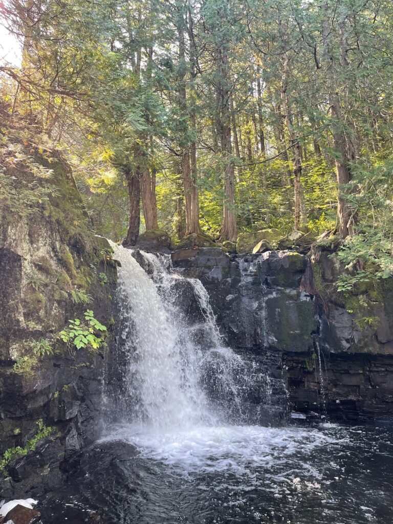 On Sunday morning, we packed up and paddled across a small bay to the portage to Caribou. This is where the heavy traffic we were expecting appeared to be, with every campsite on Caribou and Little Caribou occupied. After crossing the beautiful portage from Little Caribou to Pine, we paddled to the portage that connects to the trail to Johnson Falls. We tucked our gear aside and took the short half-mile trail to the falls. We visited Johnson Falls in our early years of getting to know the region. It was delightful to visit again, a bit more experienced.