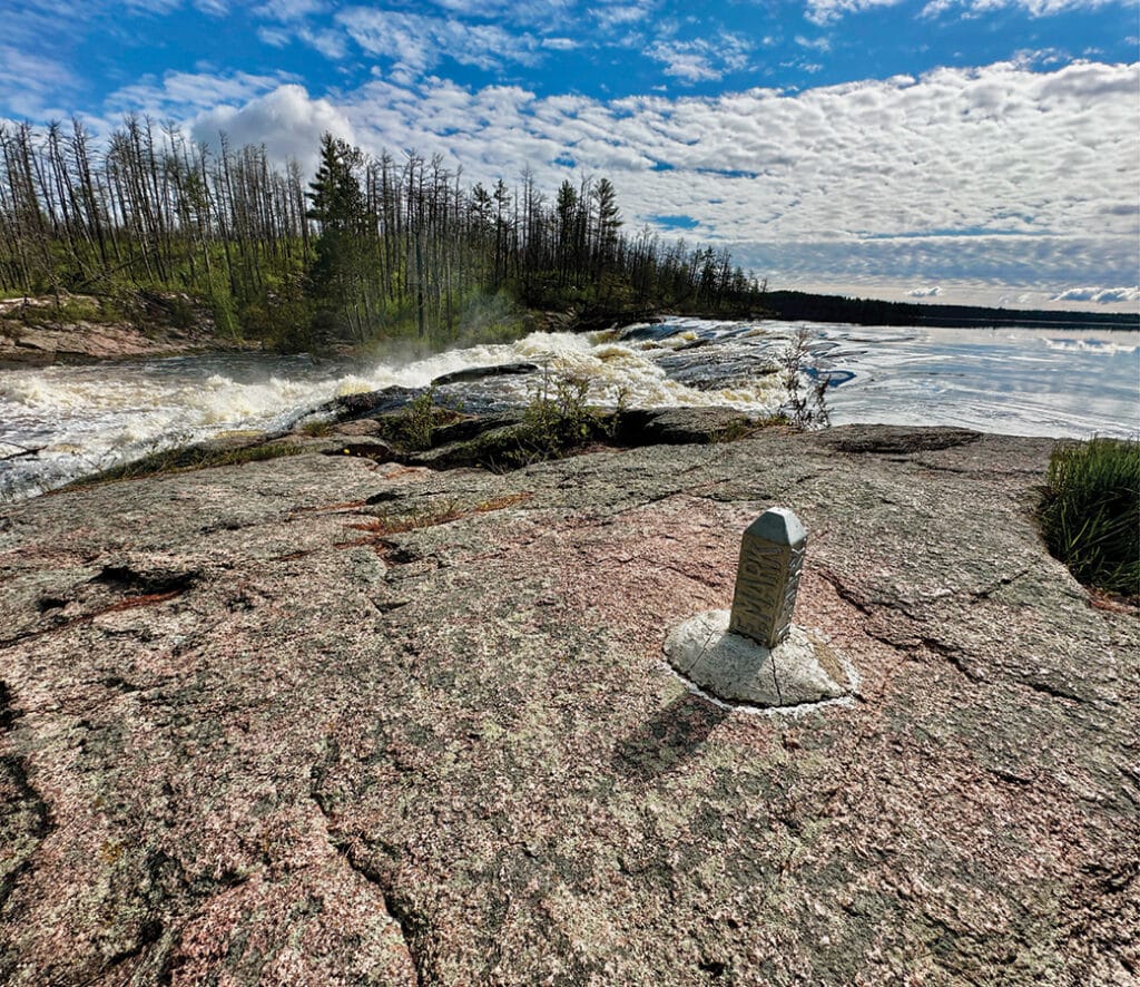 There are other subtle indications of the boundary. While paddling international waters, careful observers may also spot the occasional small metal markers cemented into the rocks that indicate the border. Because of all of the natural barriers, crossing the border illegally through this terrain would be extremely difficult without wilderness survival skills.
