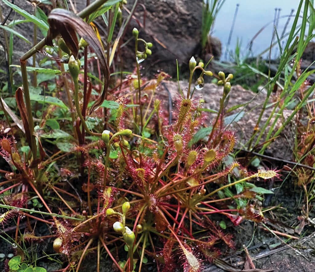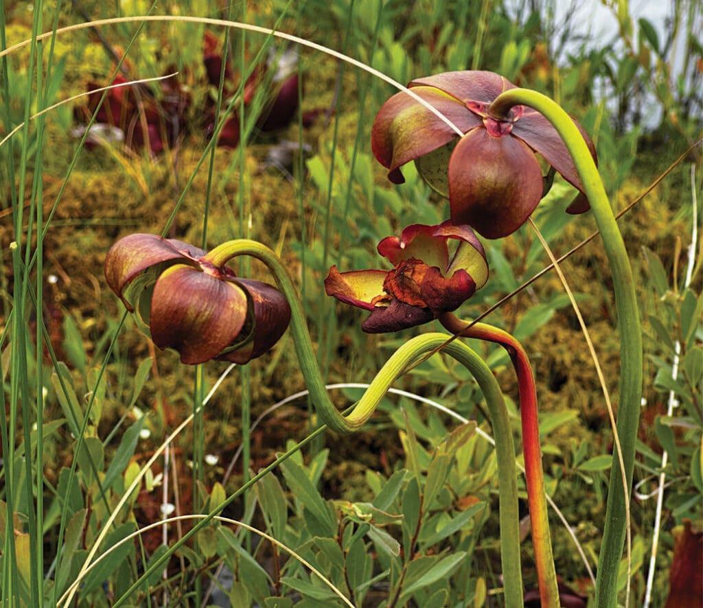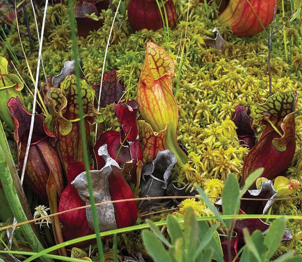 Dense forests blanket northern Minnesota, while thousands of glacial lakes dot the landscape. The habitat supports a diverse array of wildlife, including moose, wolves, black bears, and hundreds of bird species. Rivers thread through the region, tumbling into dark pools that hold trout and other fish. Rare peatlands cover nearly 10% of the forest, sheltering unusual plants and aquatic life.