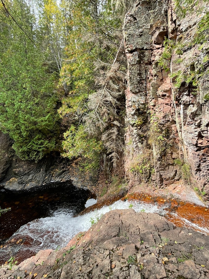 At the wayside—where your hike will begin—you’ll find the mouth of the Kadunce River flowing into Lake Superior. Depending on the season, you’ll want to keep your eyes peeled for fish heading upriver to spawn—an awe-inspiring sight to see. There’s a long beach you can walk or just relax and enjoy a snack. You will also find picnic tables and seasonal portable toilets that were unusable during my last visit due to heavy use. I’d recommend planning to make a pit stop to use the facilities and stock up on supplies on your way. This can be a busy spot, and parking fills up fast. Plan to arrive early or loop back later in the day, which is what I had to do during my most recent visit.