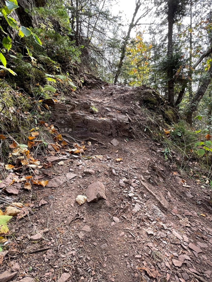 Once you’re ready to hit the trail, you’ll need to cross Highway 61. Use caution and wait until it’s undoubtedly safe to cross. It’s always essential to practice Leave No Trace. You can learn more about the seven principles here. Here, in particular, I encourage you to travel on durable surfaces. Do your best to stay on the trail and avoid any social spur with visible erosion. I hadn’t hiked this section for about five years and found the amount of trail damage since then to be concerning. You’ll also want to use caution along the edge of the trail as there are several steep drop-offs.