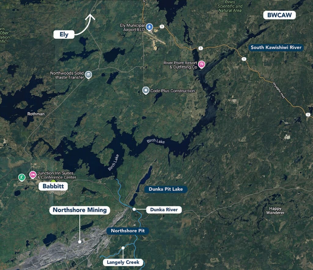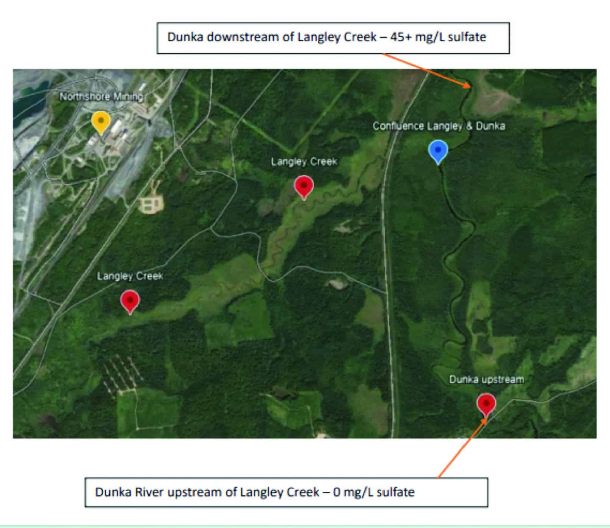 Birch Lake Reservoir is one of several northern lakes listed as impaired due to high sulfate levels. Scientists from the Northern Lakes Scientific Advisory Panel (NLSAP) identified the Dunka River as a source of the sulfates. The river outlets on the southeastern shore of Birch Lake. Eric Morrison, who holds a PhD in chemistry, said mine waste from the Northshore taconite mine flows into Langley Creek and shows high sulfate levels near the source, where the mine discharges wastewater into the creek. Langley Creek connects to the Dunka River, which eventually flows into Birch Lake. This leads to a rise in mercury in fish, which is harmful to humans, especially pregnant women and children.