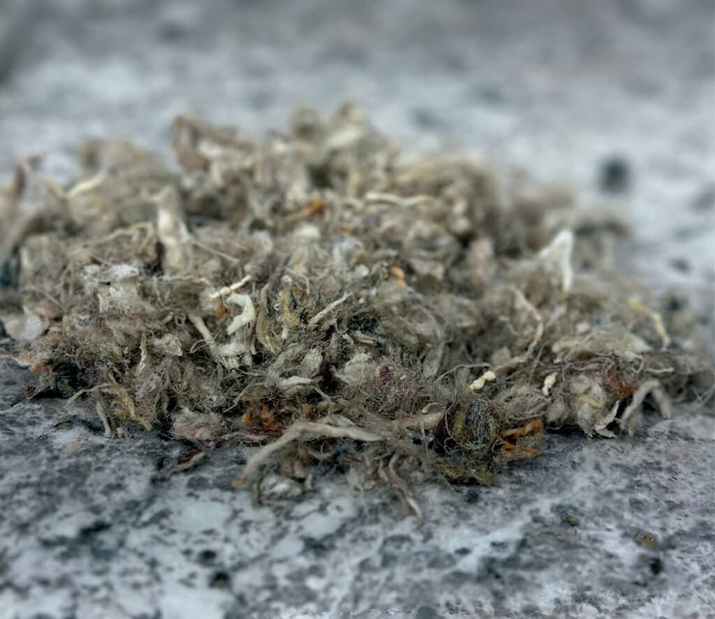 Water from Spring Mine Creek, which runs near the defunct LTV Steel Mining Company, sits in a large plastic tank outside his mobile lab. This tank pumps sulfate-contaminated water into another tank, or “bioreactor,” inside the lab. Loose fibers from post-consumer polypropylene carpet line the bioreactor. They provide a cheap, effective surface for growing sulfate-reducing bacteria.