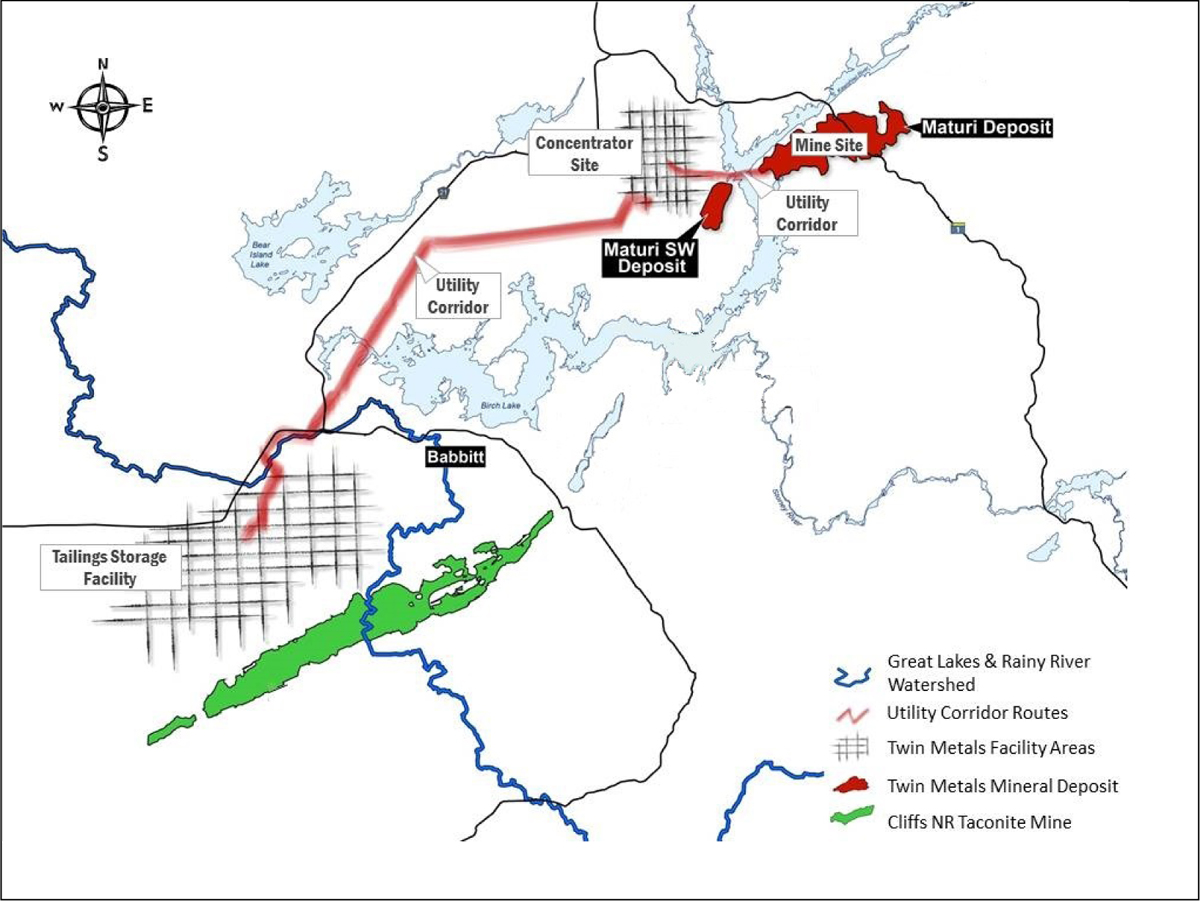 The project would include an underground mine, located near the South Kawishiwi River and Birch Lake, about nine miles southeast of Ely along Highway 1. It would be about three miles from the South Kawishiwi River entry point to the Boundary Waters Canoe Area Wilderness. Ore would be processed underground and half of the tailings—he waste left over after processing—would be stored in the mine, while the other half would be transported across the Laurentian Divide to tailings basins planned near Babbitt, in the Lake Superior watershed.