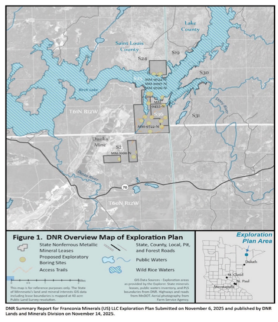 - Exploration plan submitted by Franconia Minerals (US) LLC on November 6, 2025